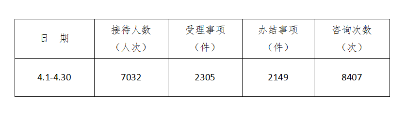 雨花市民之家•综合审批区2025年4月份服务情况统计表