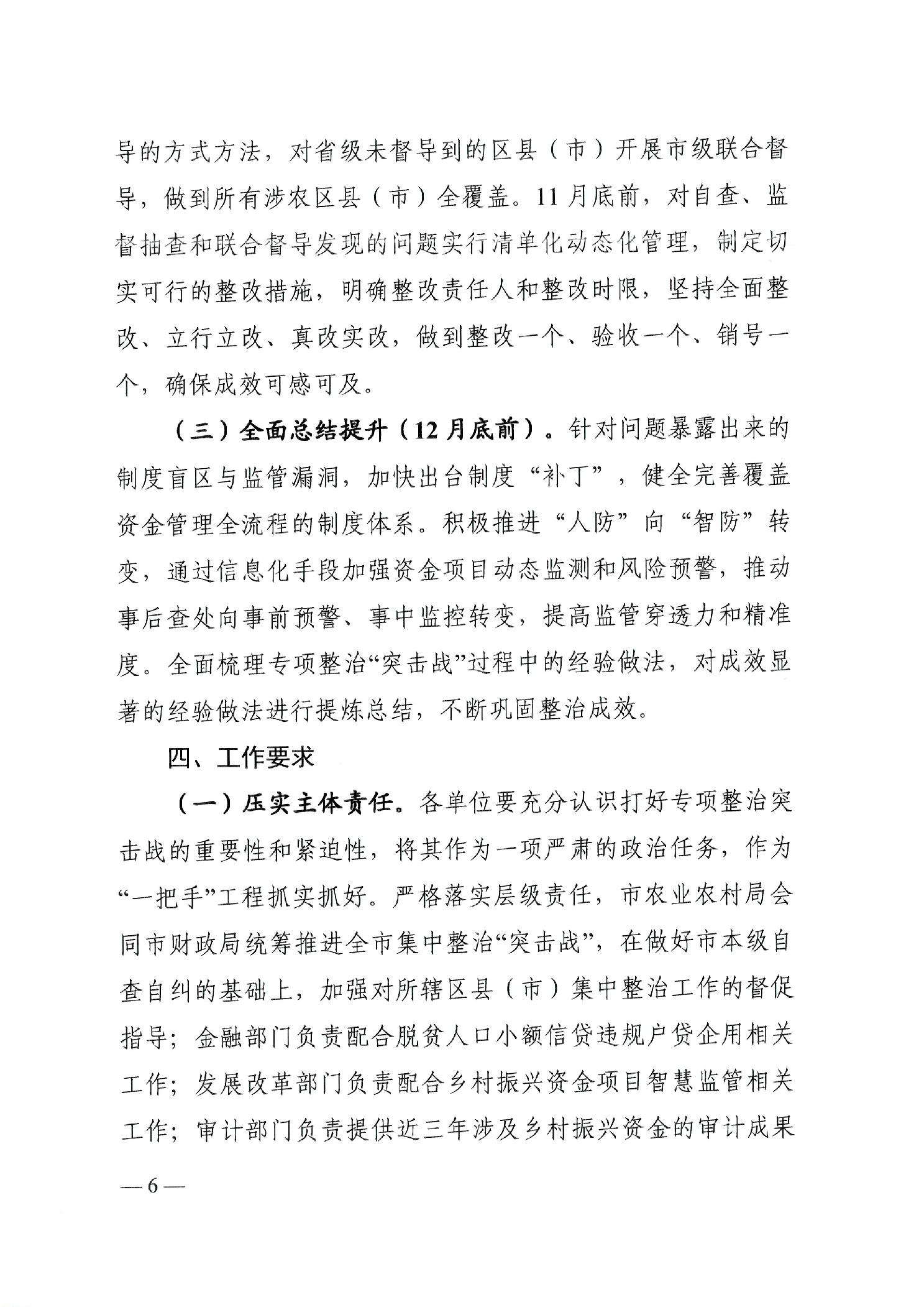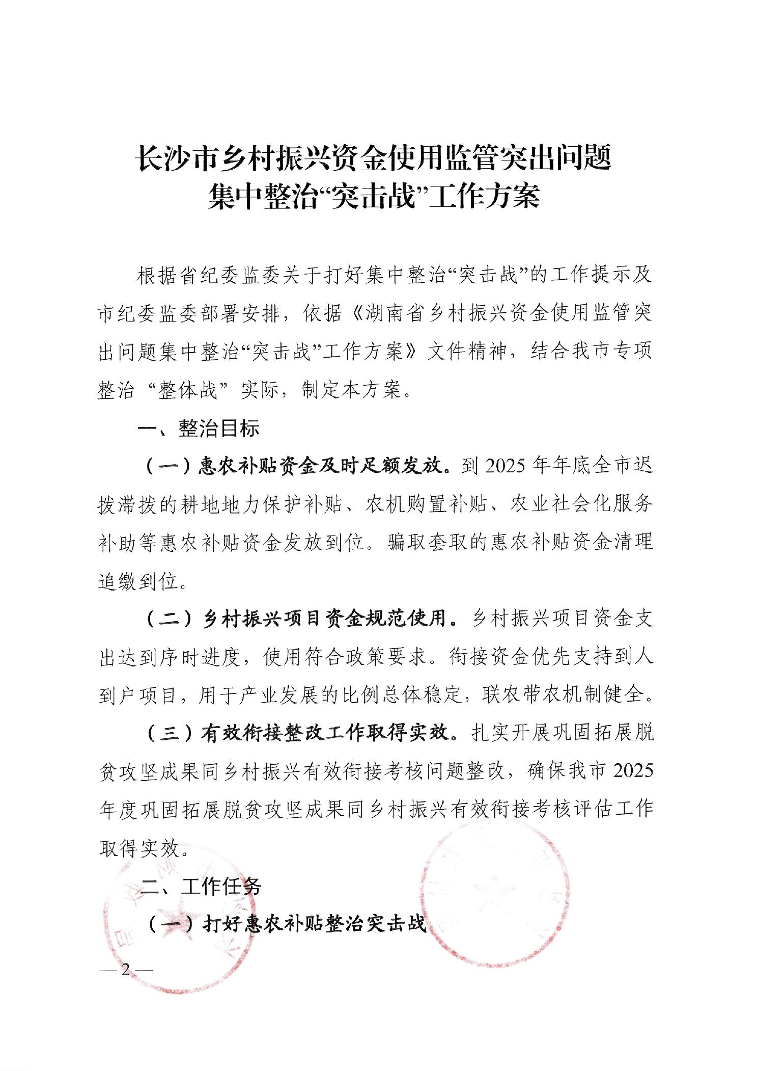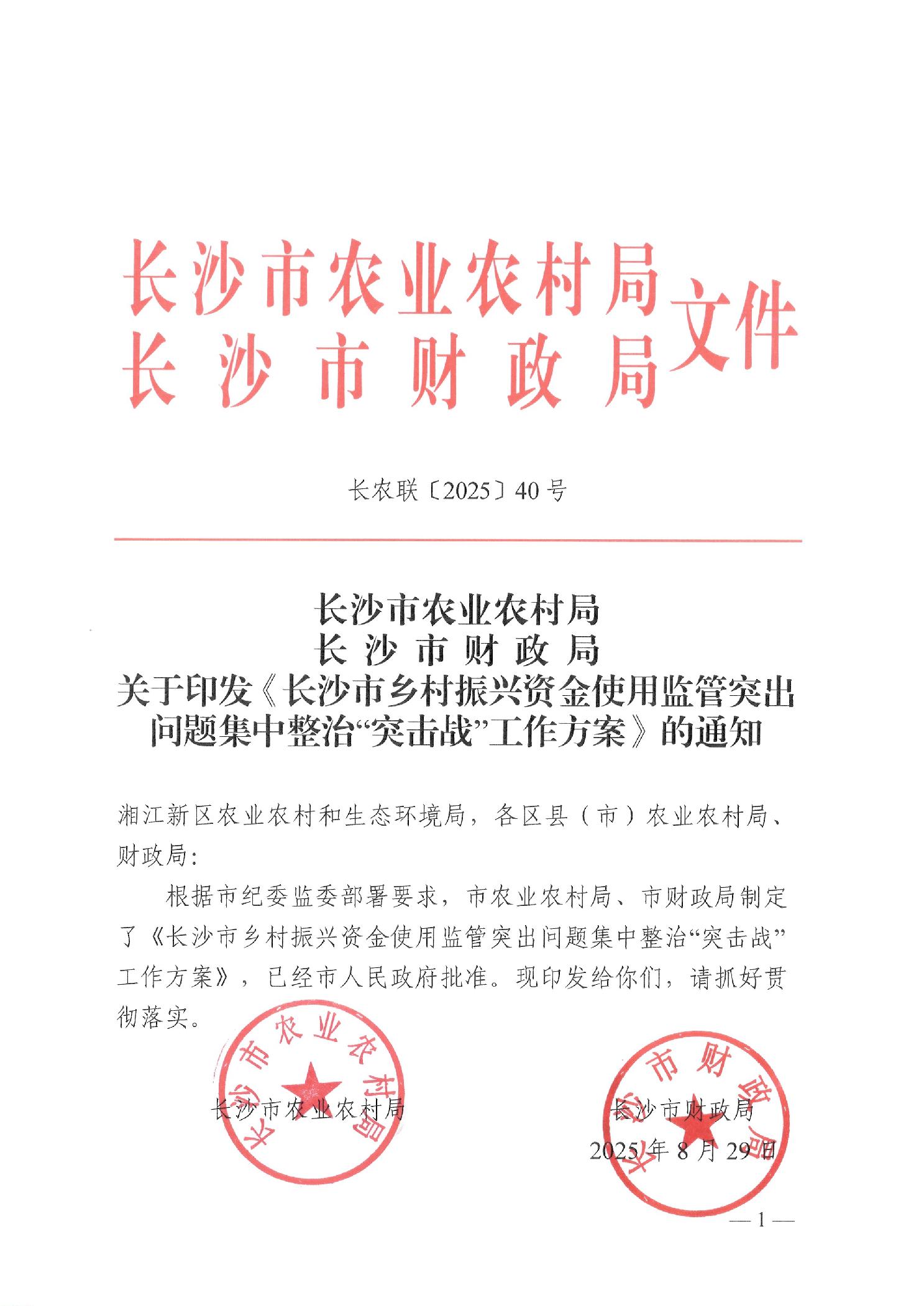 长沙市农业农村局 长沙市财政局关于印发《长沙市乡村振兴资金使用监管突出问题集中整治“突击战”工作方案》的通知