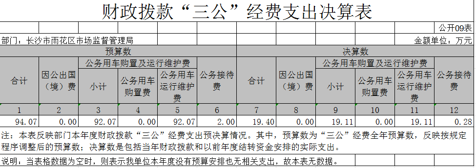 2023年度长沙市雨花区市场监督管理局三公经费支出决算表.xlsx