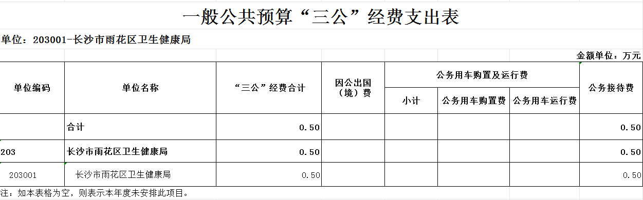 2025年度长沙市雨花区卫生健康局部门预算三公经费公开表格.xlsx