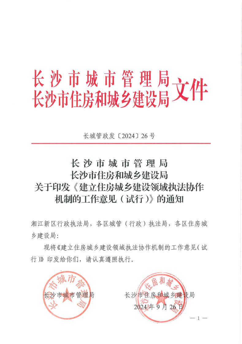 关于印发《建立住房城乡建设领域执法协作机制的工作意见(试行)》的通知