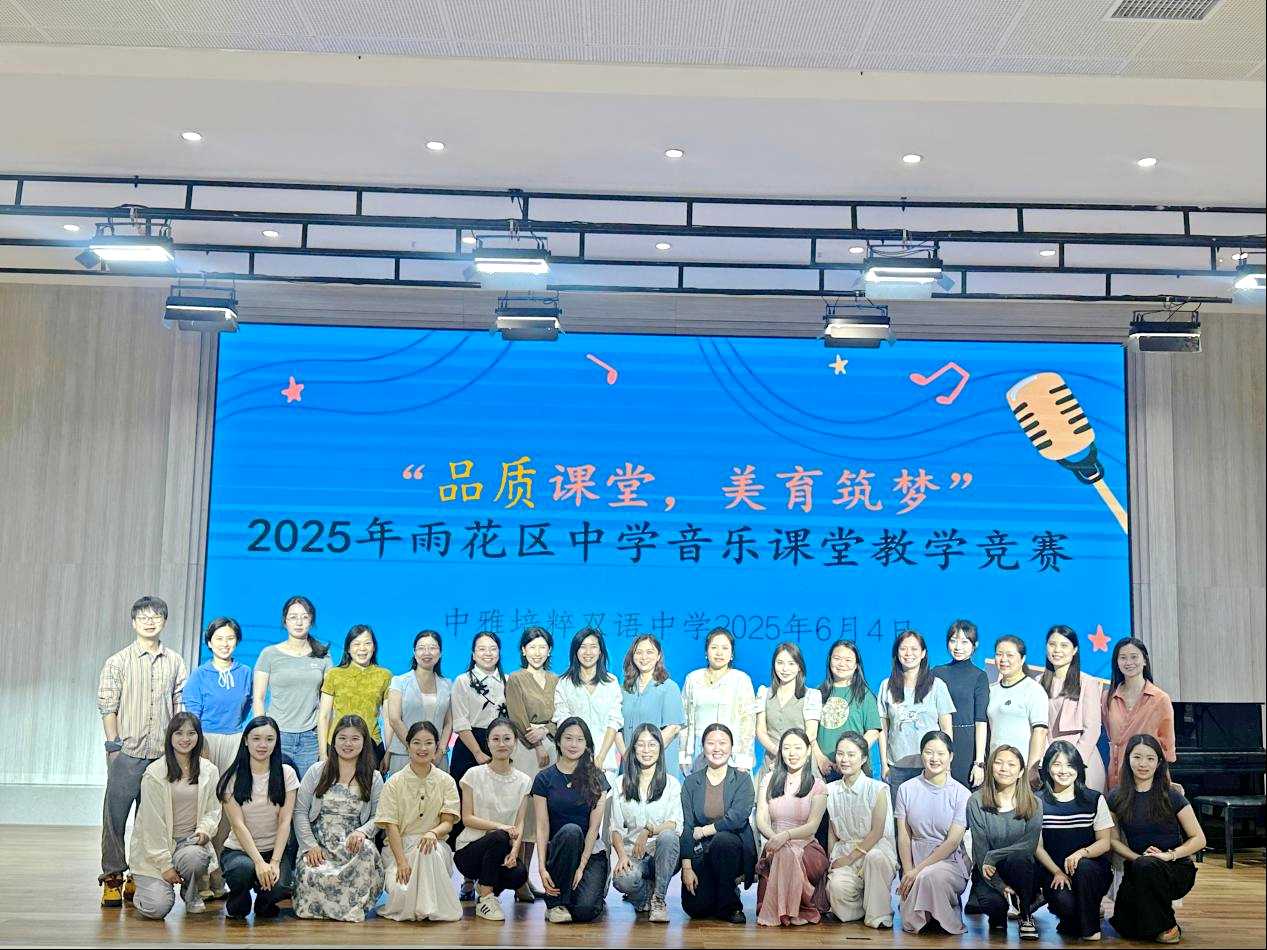 近日,2025年雨花区中学音乐新教材课堂教学竞赛活动在中雅培粹双语中学举行。此次活动吸引了雨花区全体中学音乐教师踊跃参与,共同为提升音乐教学质量、探索新教材应用献计献策。