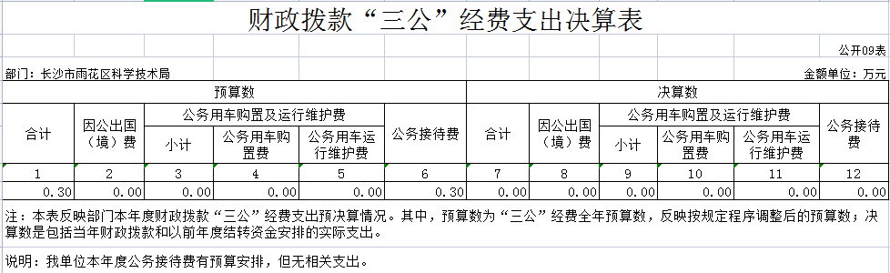 2023年度长沙市雨花区科学技术局“三公”经费决算表.xlsx