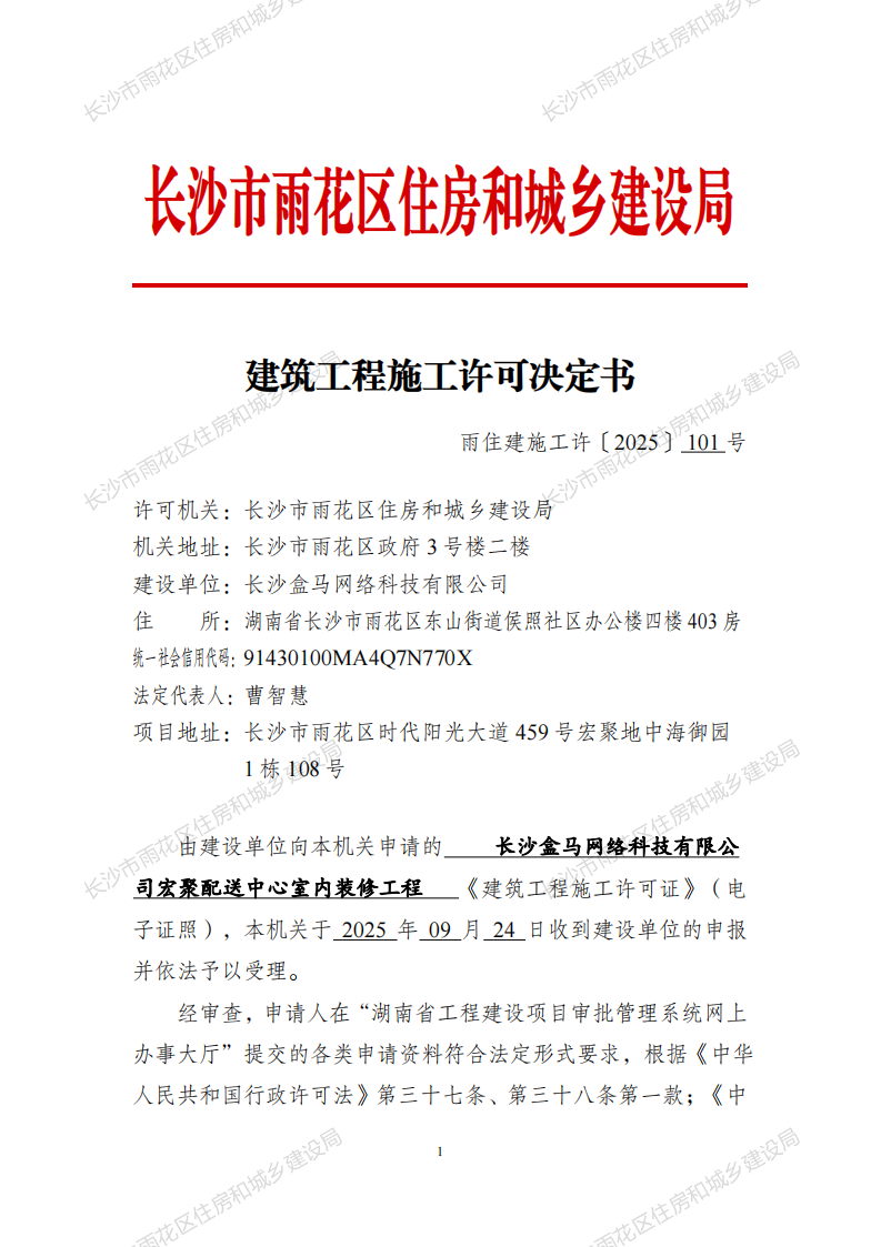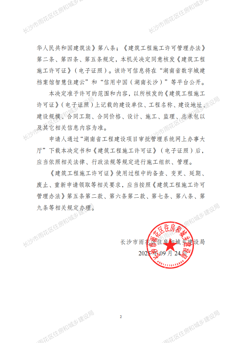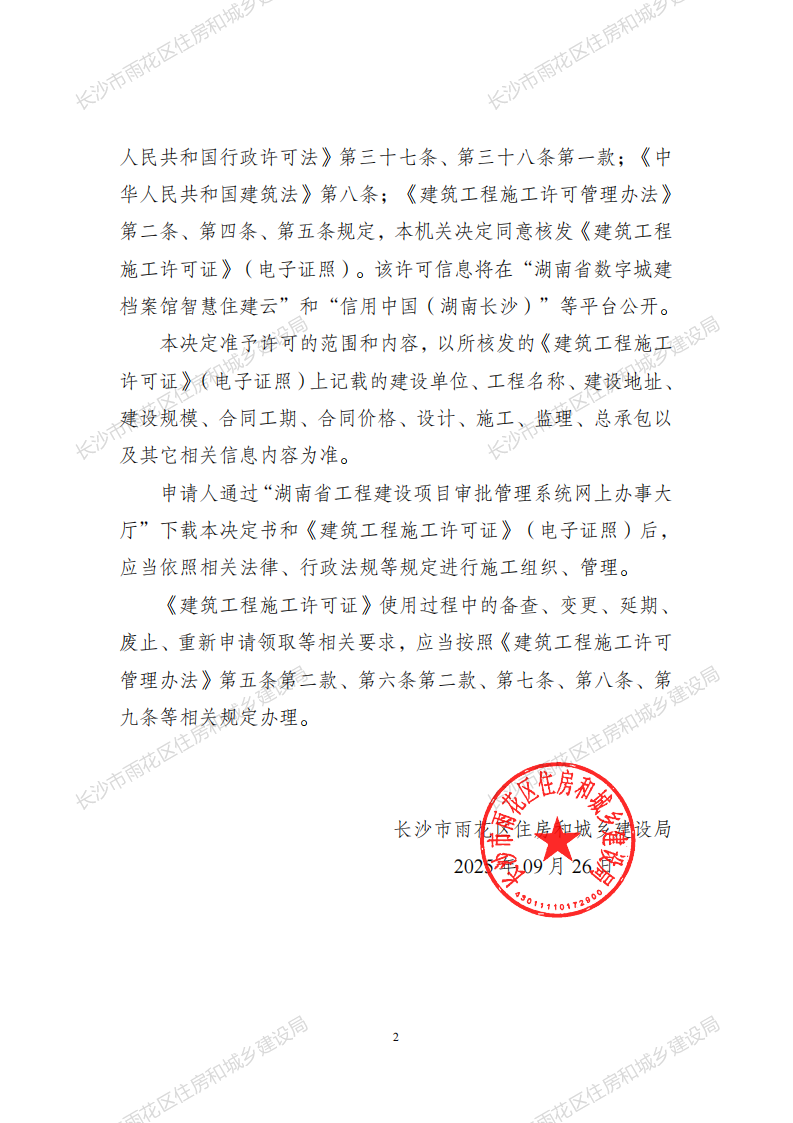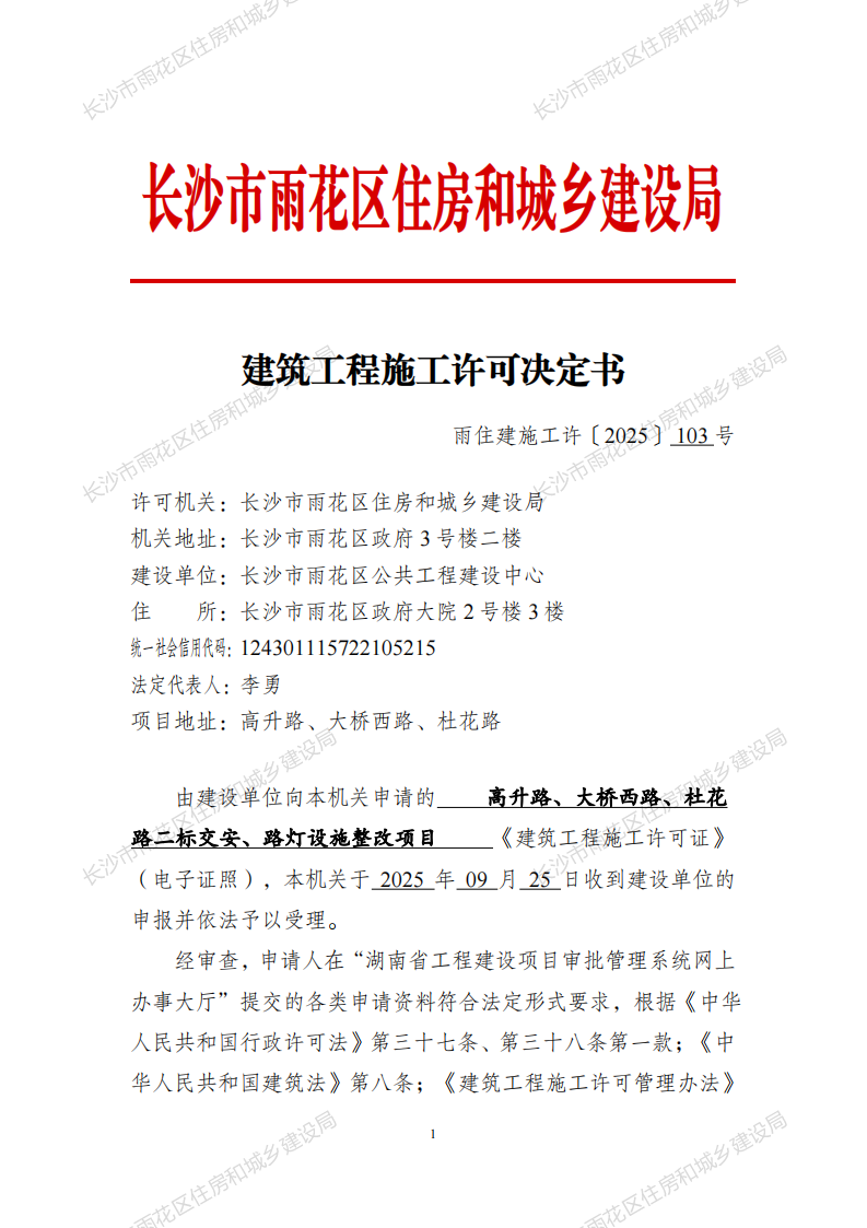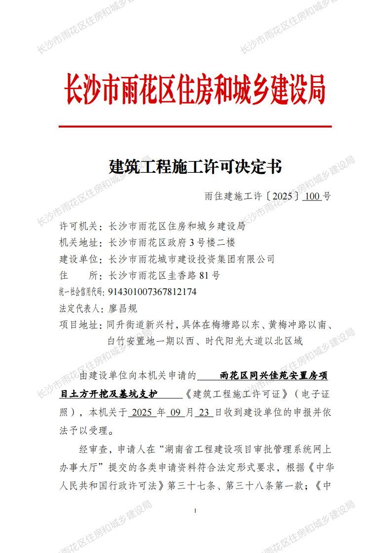建筑工程施工许可决定书(雨住建施工许[2025]100—103号)