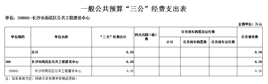 长沙市雨花区公共工程建设中心2025年“三公”经费预算表