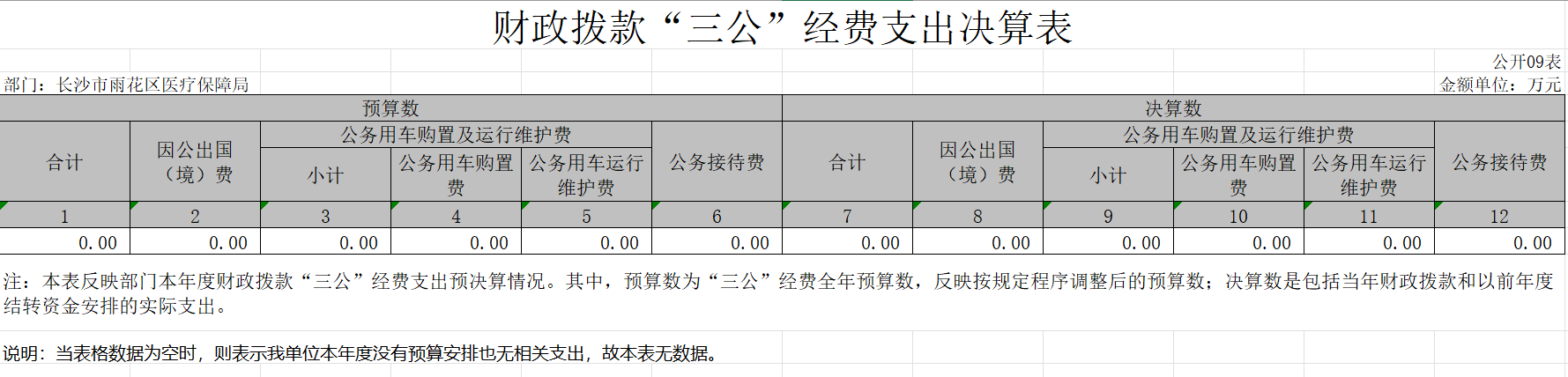 2023年度长沙市雨花区医疗保障局“三公”经费支出决算表.xlsx