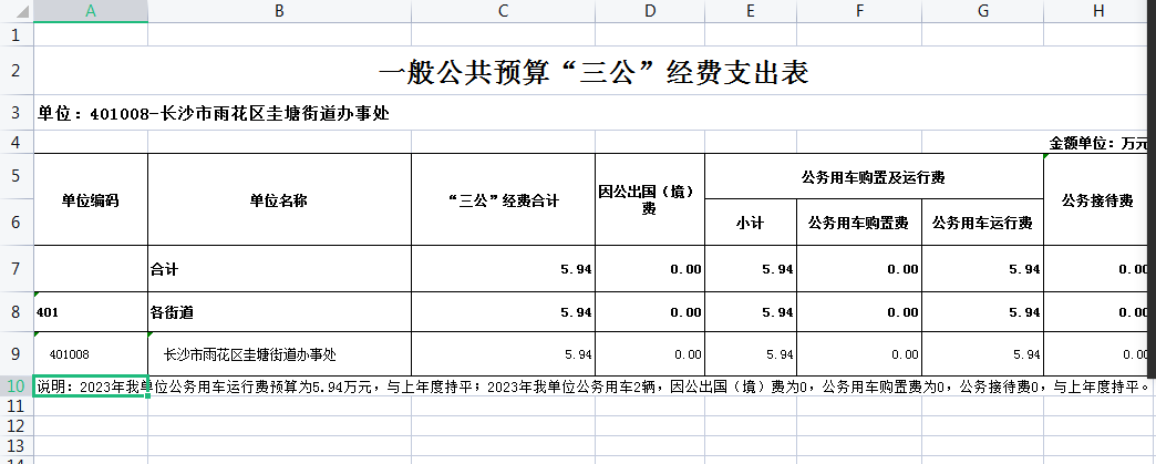 雨花区圭塘街道2023年“三公”经费预算表