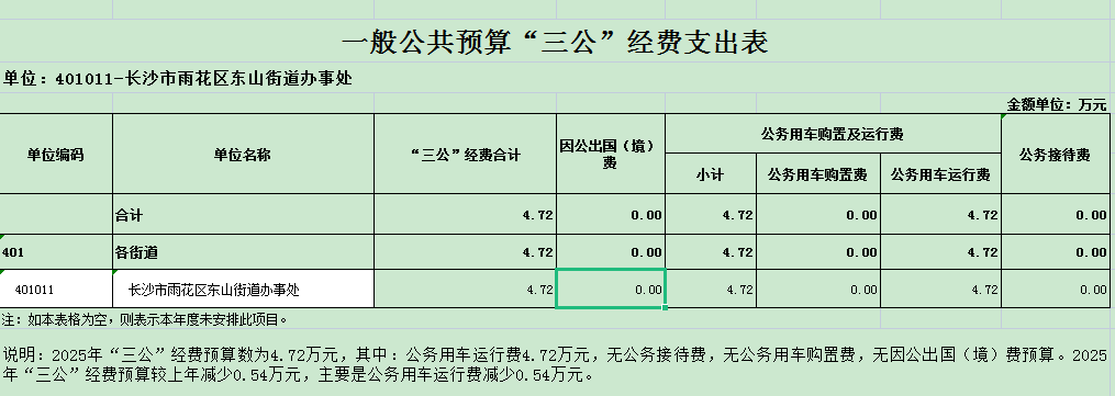 2025年度长沙市雨花区东山街道办事处一般公共预算“三公”经费预算表.xlsx