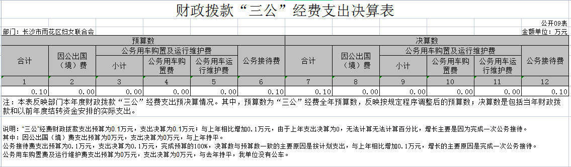 2023年度长沙市雨花区妇女联合“三公”经费支出决算表